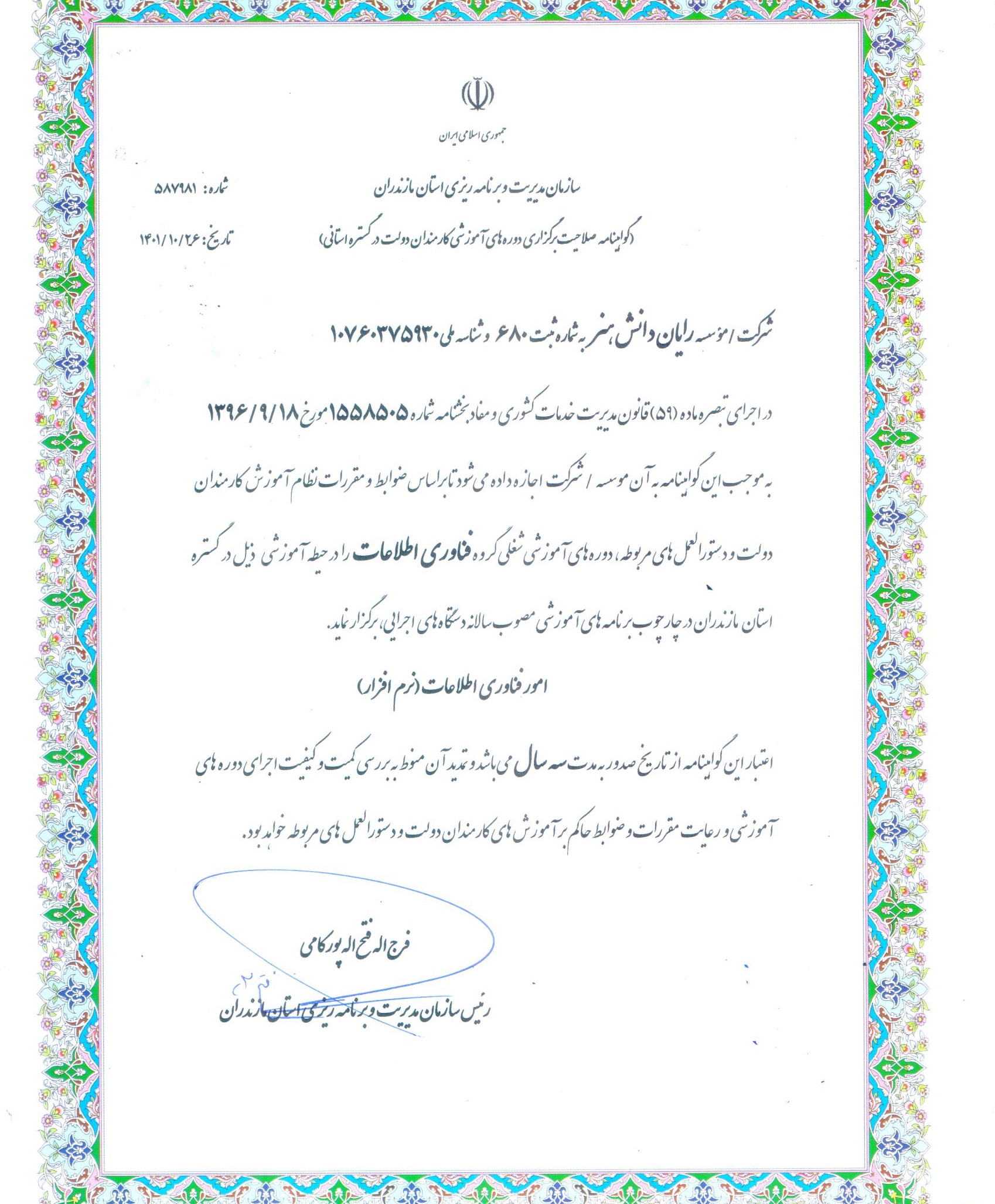 مجوز رایان دانش هنر از امور استخدامی کشور