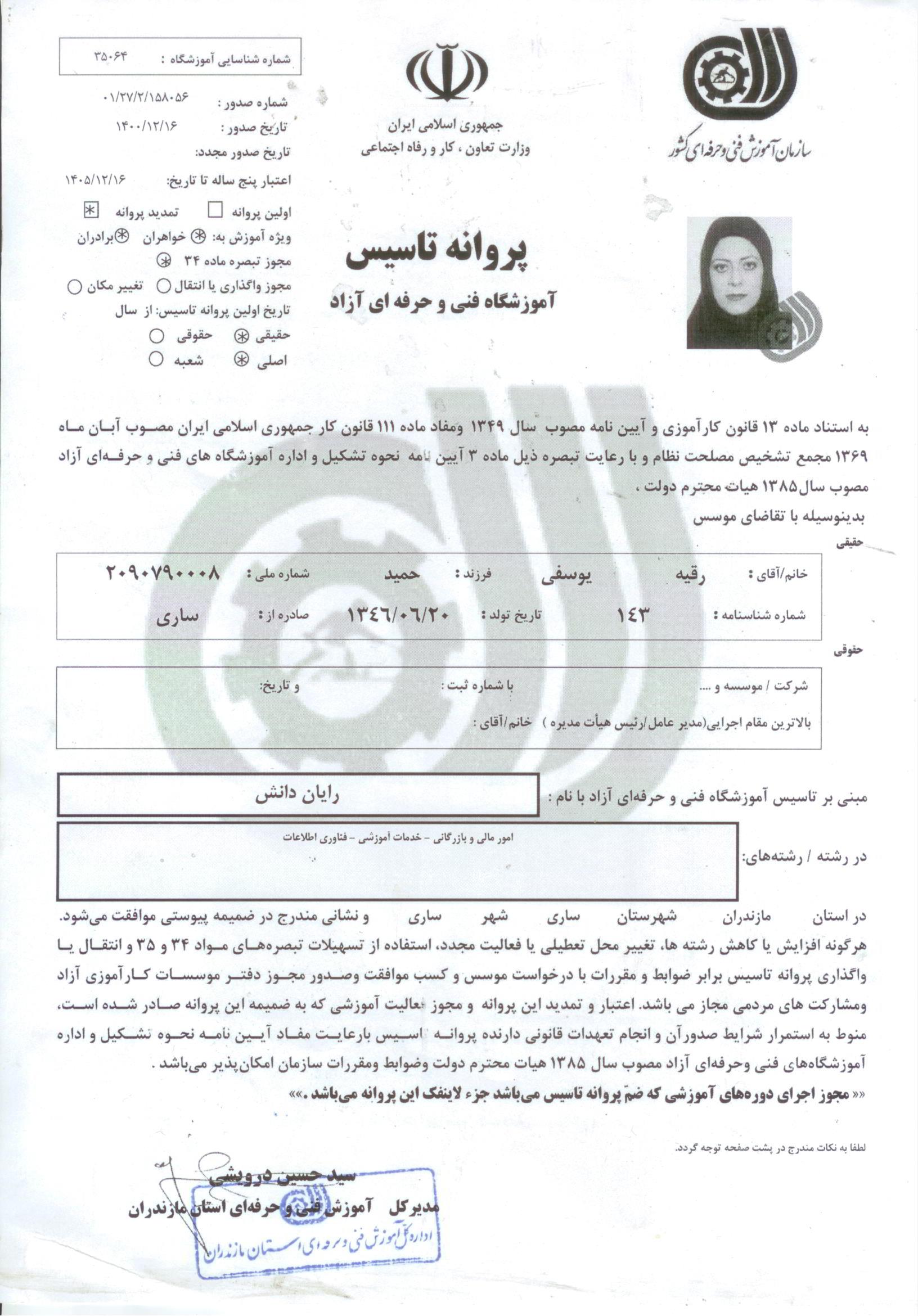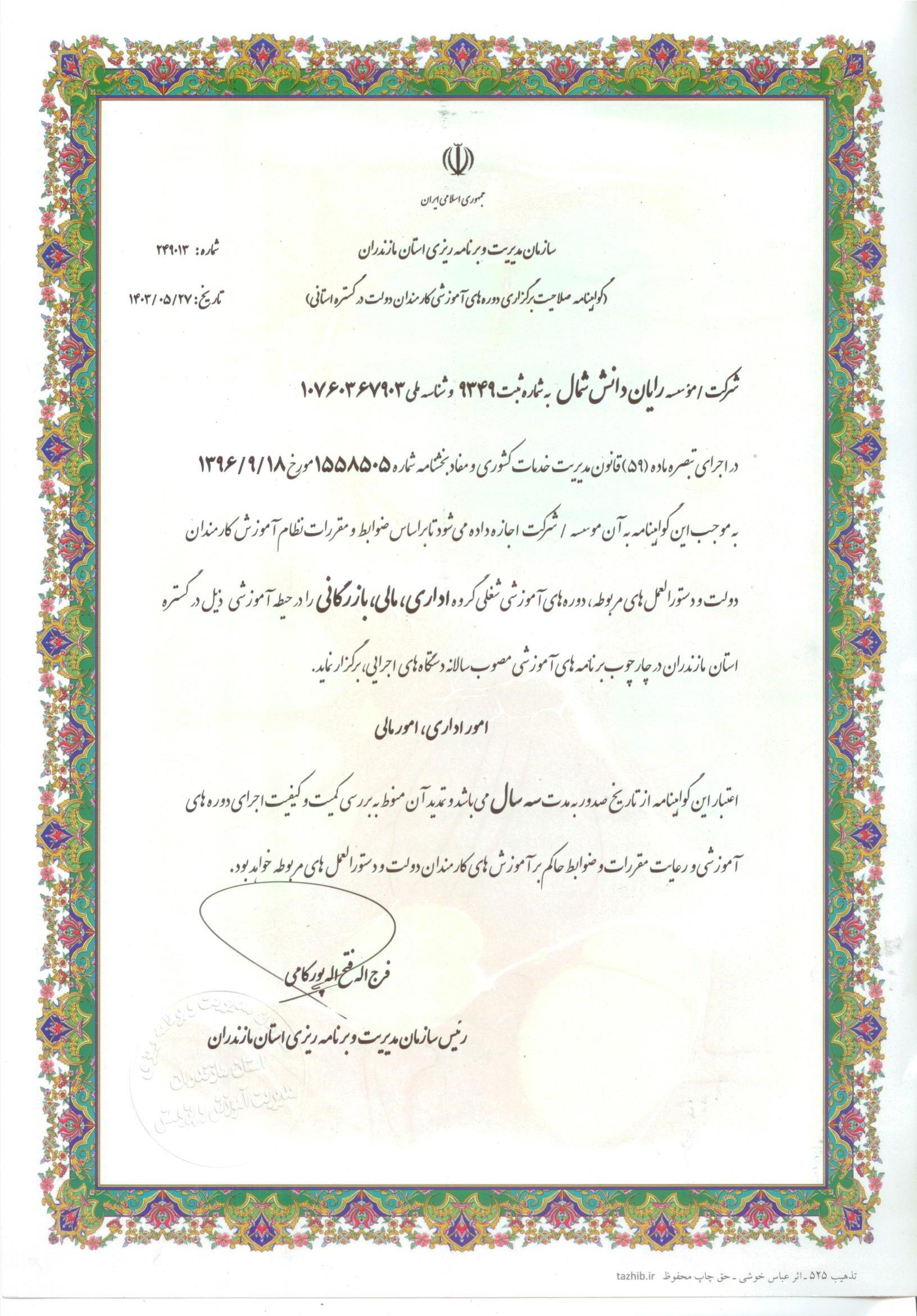 مجوز رایان دانش شمال از امور استخدامی کشور