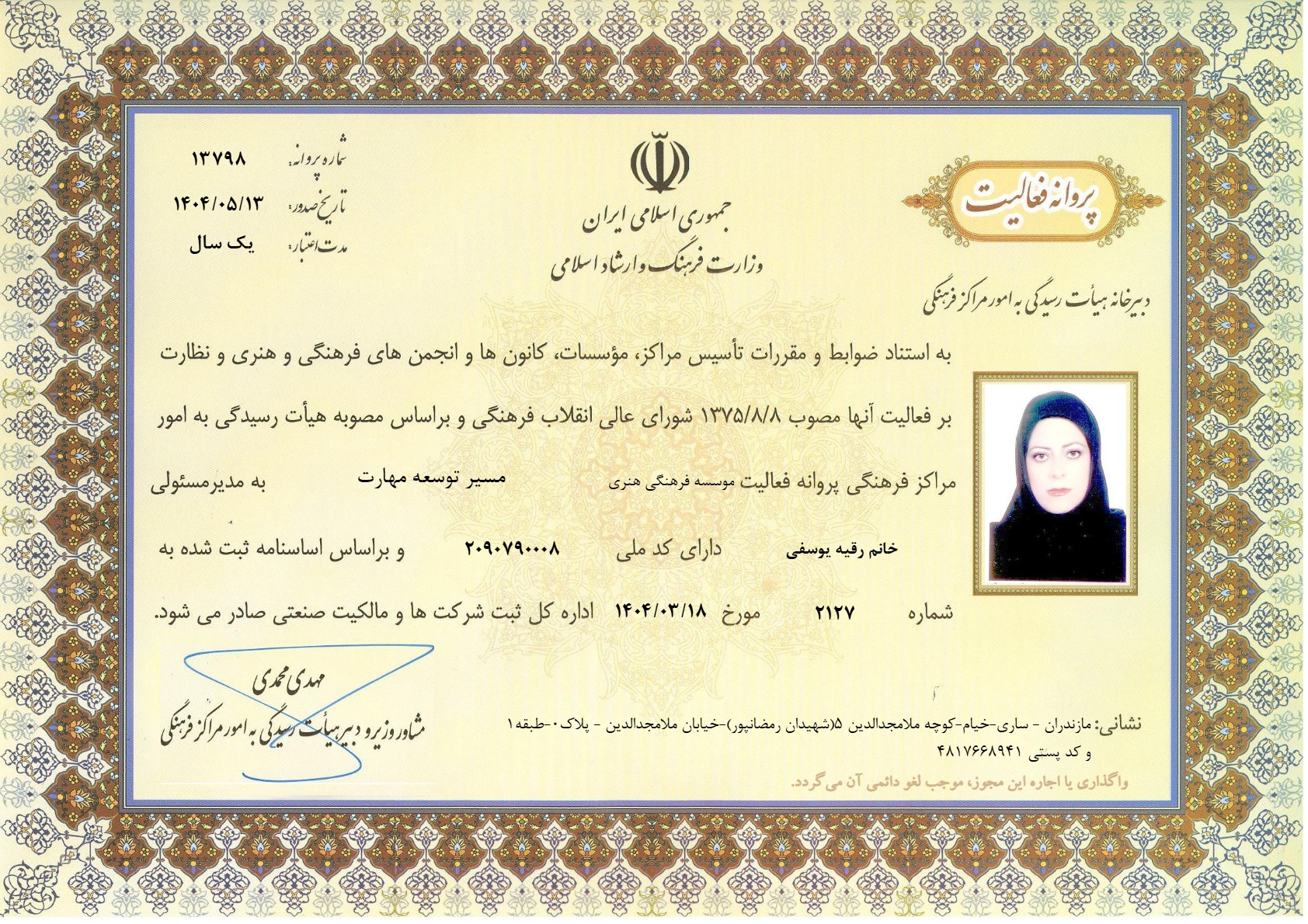 مجوز چند منظوره وزارت فرهنگ وارشاداسلامی